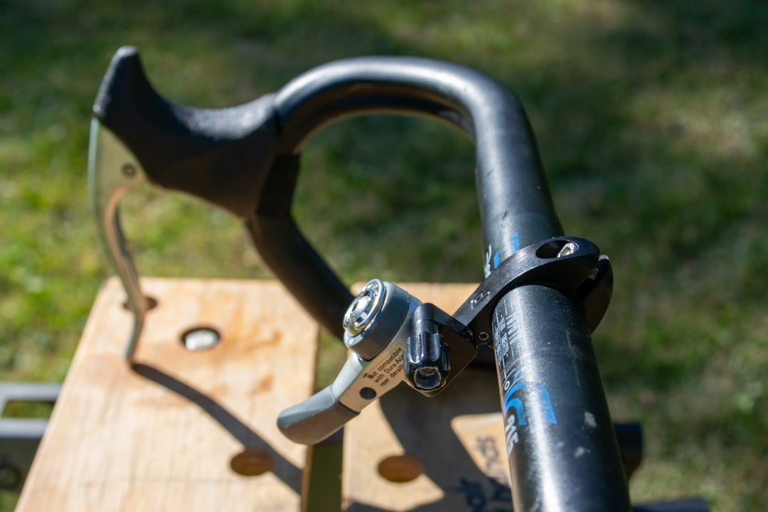 This adapter converts any Shimano bar-end shifter into a thumb shifter. It also works with most Shimano downtube shifters. Hinged clamp allows for easy installation. (The bars, brake levers, and shifter shown are not included - they are pictured here just for example). This component is slightly used, and has some wear marks. However, the wear is not visible when a thumbie is installed.
